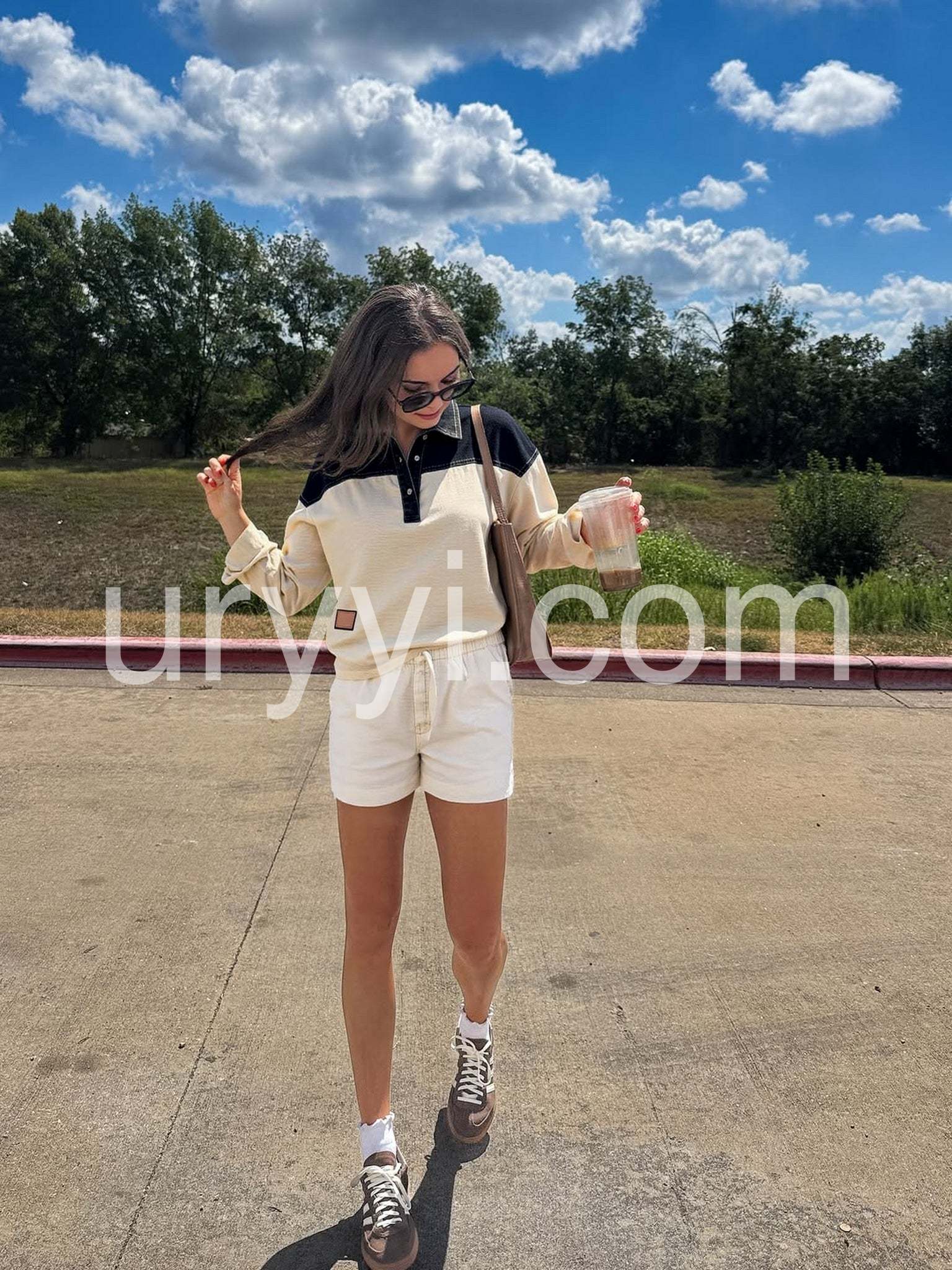 - Neckline: Collared
