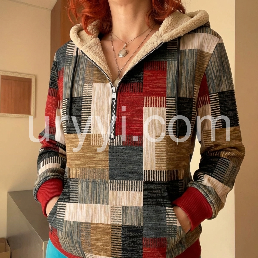 This versatile sweatshirt combines comfort with contemporary style through its distinctive patchwork design. The fleece lining provides warmth and softness against the skin, making it ideal for layering during cooler months. The zip-front closure allows for easy adjustment and ventilation, while the casual silhouette works seamlessly with jeans, joggers, or athleisure wear. Durable construction ensures lasting wear through frequent washing and everyday use. Perfect for weekend outings, casual work environments, or relaxed social gatherings.