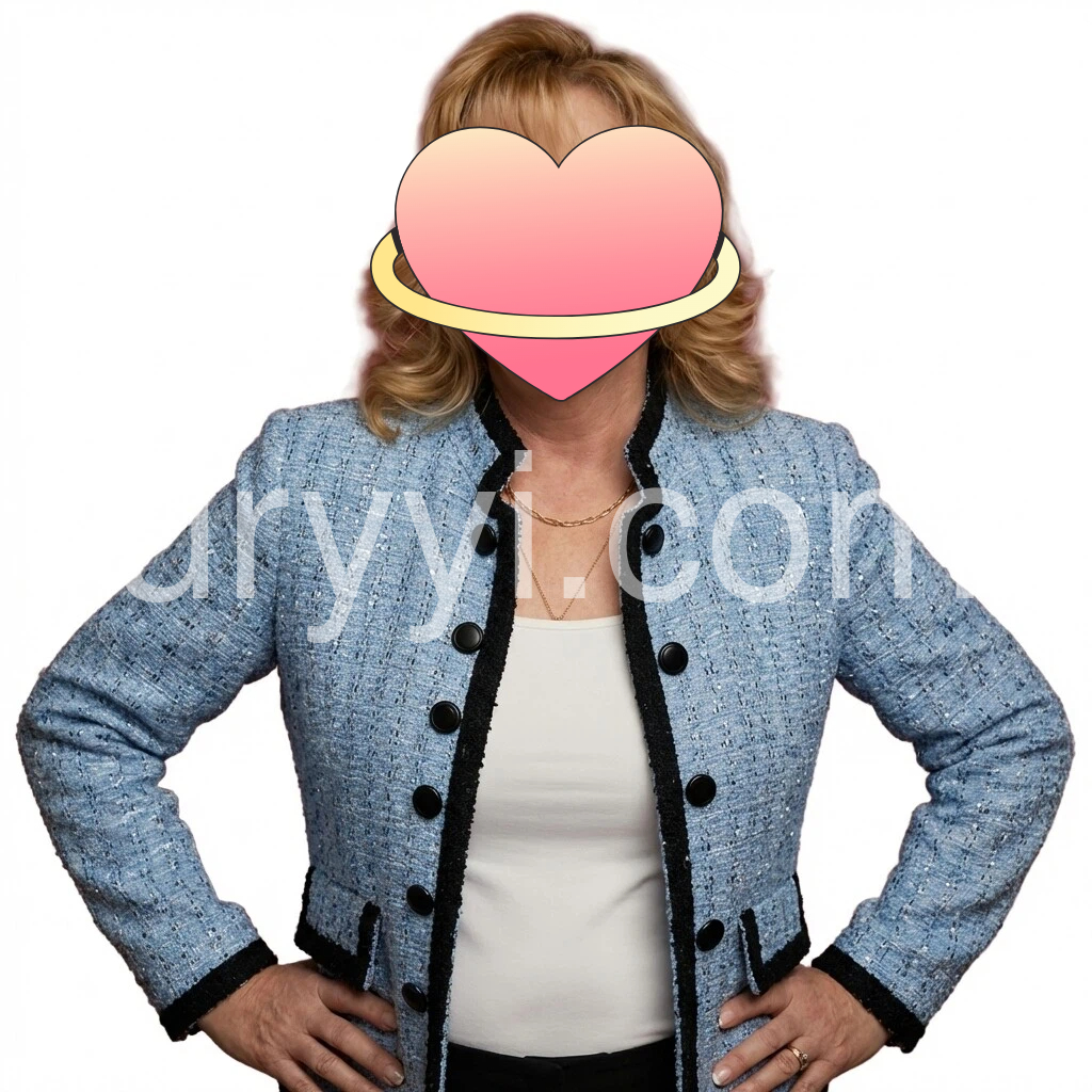This blue tweed blazer features a refined black trim and a classic double-button closure, offering a sharp, tailored fit. Its textured fabric adds depth and sophistication, making it ideal for both professional settings and stylish casual wear. Designed to elevate your wardrobe with timeless elegance and structured silhouette.
