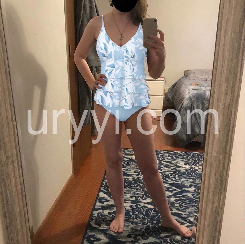 I’m 5’11”, 160#, and normally wear a medium top. I ordered the L. It quickly became my favorite bathing suit, particularly because I have no booty, so the rouching design makes that a little less awkward. 😂