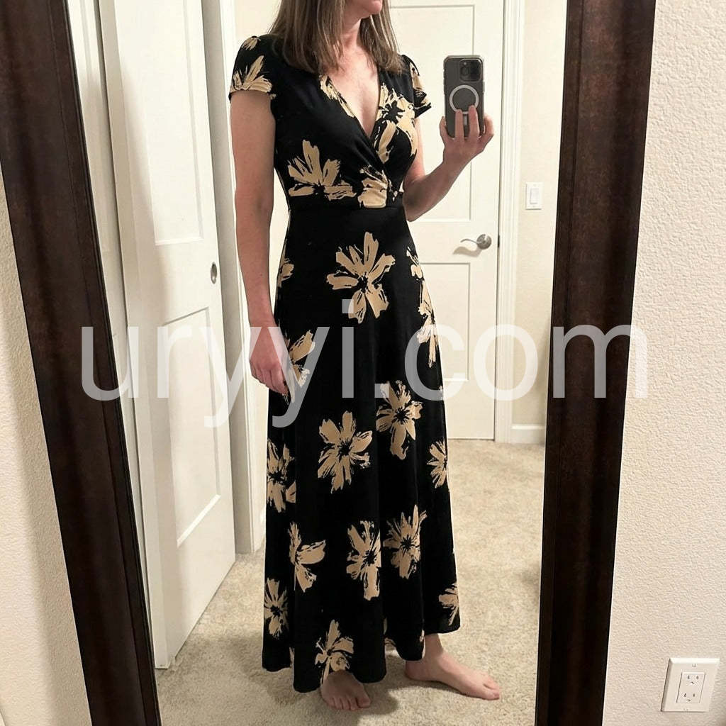 Special V-Neck Short Sleeve Maxi Dress